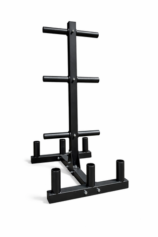 - Six available storage pegs that accommodate 2.5LB-45LB Olympic weight plates and bumper plates.