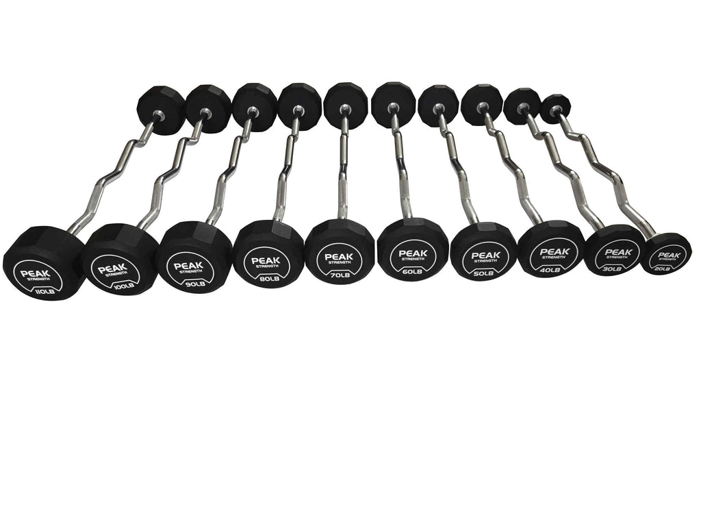 20LB-110LB Hex Rubber EZ Curl Barbells Signature Series